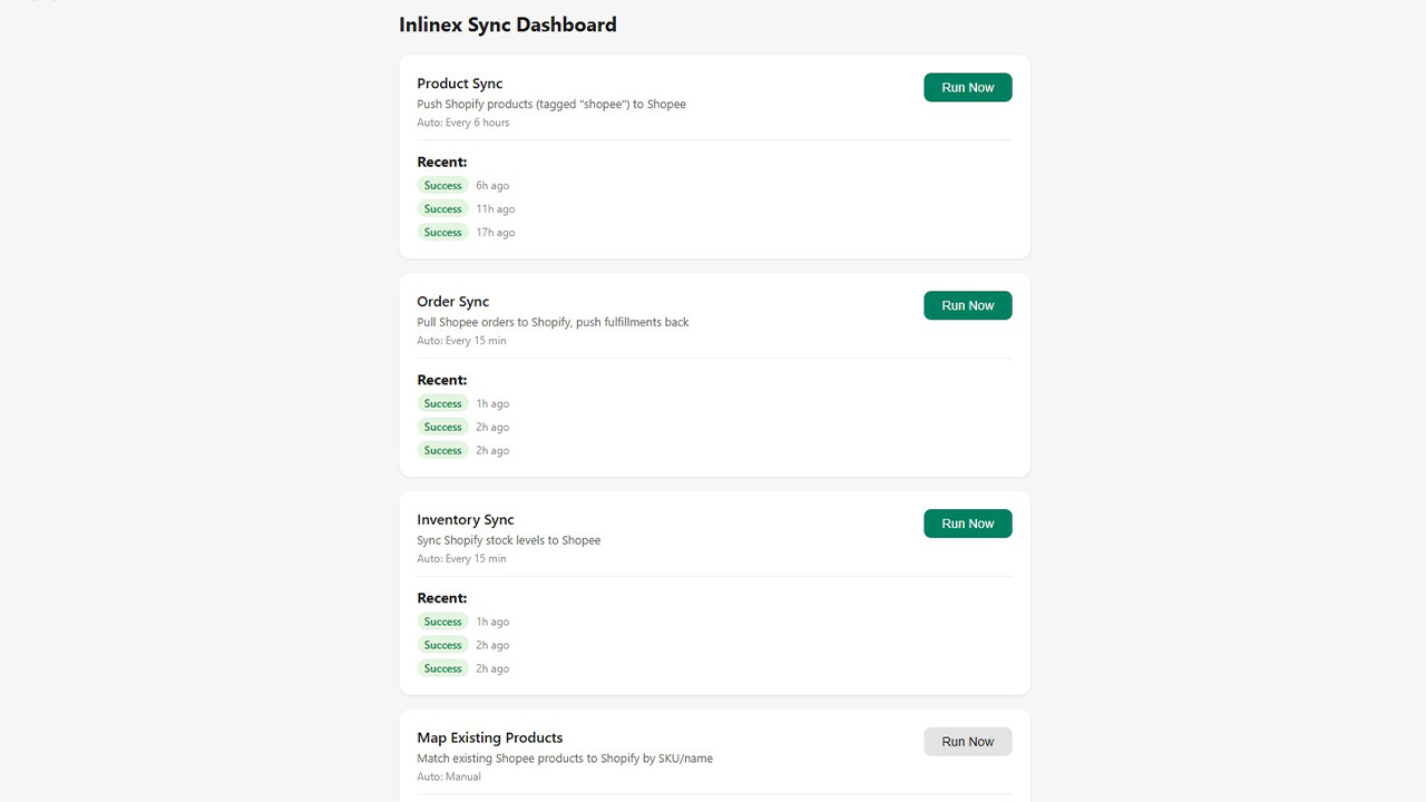 Automated product, inventory, and order sync between Shopify and Shopee Singapore, enabling multi-channel selling with real-time stock updates.