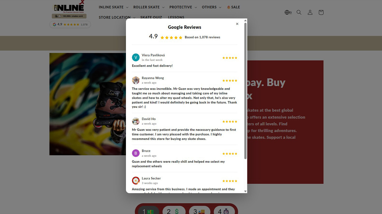 Shopify app that automatically displays a Google Reviews badge directly under the store logo, showing live star ratings and review counts from Google Business Profile.